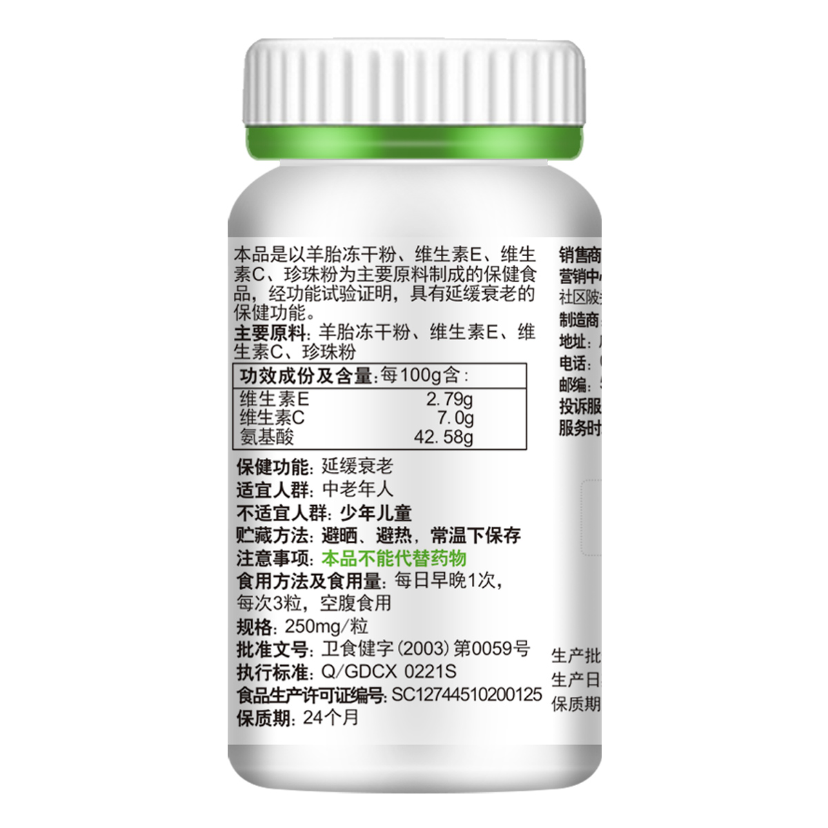 产品规格:250mg/粒 x 60粒